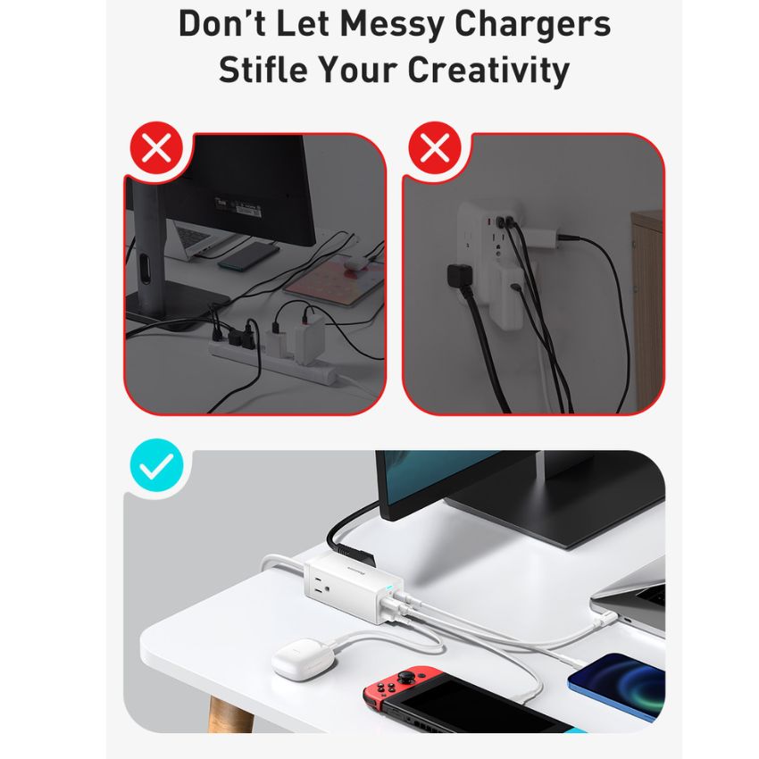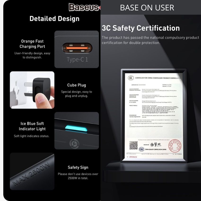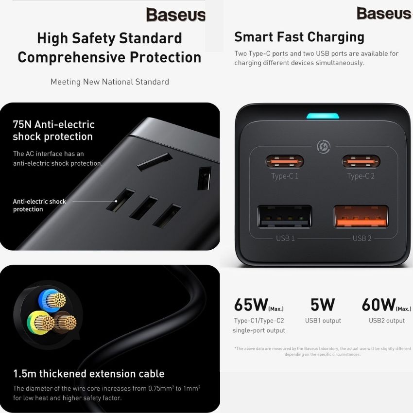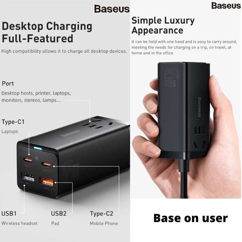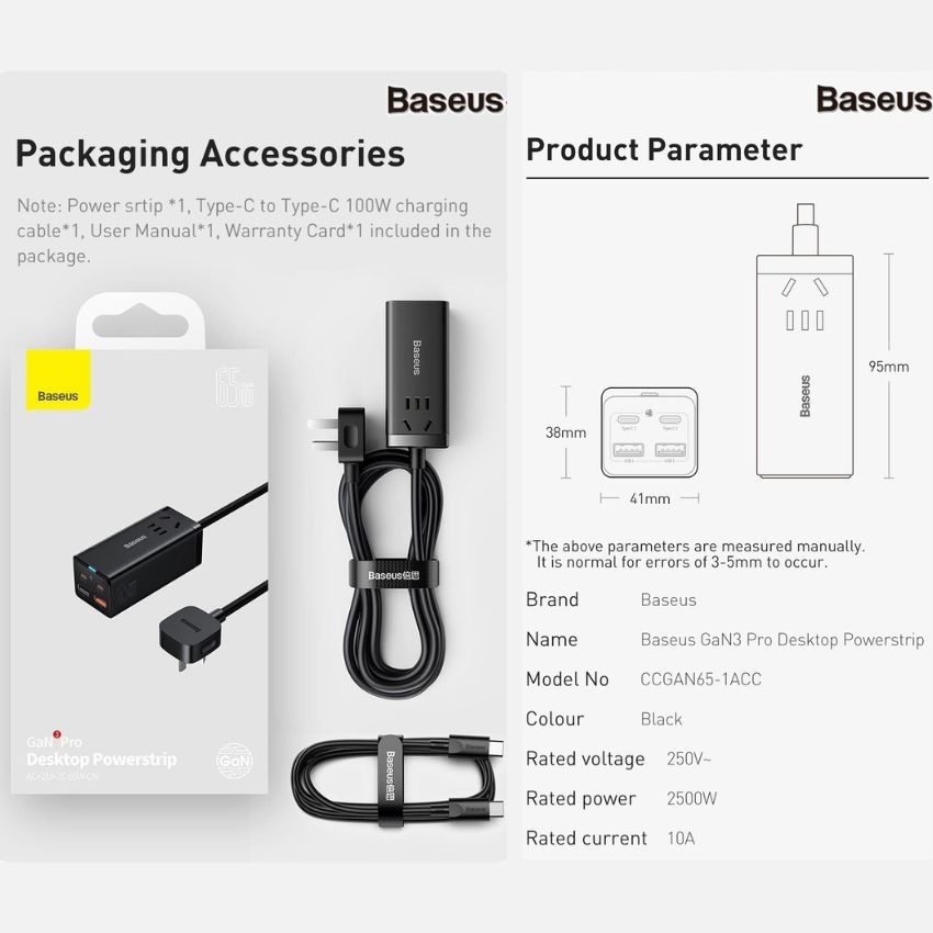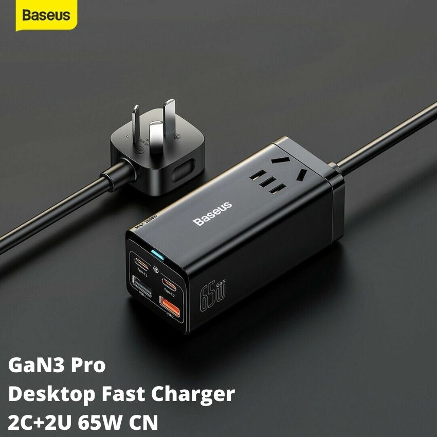 Hình Ảnh Bộ Sạc Nhanh kèm dây Baseus CCGP040102 Baseus GaN3 Pro Desktop Fast Charger 2C+2U 65W US White (Include: Baseus Xiaobai series fast charging Cable Type-C to Type-C 100W(20V/5A) 1m White) sạc siêu nhanh cho macbook, laptop 5 in 1 AC 100V-240V