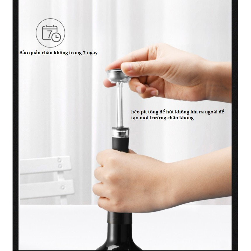 Bộ dụng cụ mở và bảo quản rượu vang Circle Joy CJ-TZ08 còn được tích hợp nút bảo quản rượu, tích hợp đầu hút chân không, được làm từ vật liệu silica gel, đảm bảo các yêu cầu về vệ sinh an toàn thực phẩm. Nút chai sau khi đậy sẽ giúp đẩy toàn bộ không khí bên trong chai ra ngoài, việc này hạn chế quá trình tiếp xúc và oxy hóa của không khí, giữ cho rượu tươi lâu hơn đến tận 7 ngày sau khui nắp, hương vị vẫn ngon như vừa mới khui.