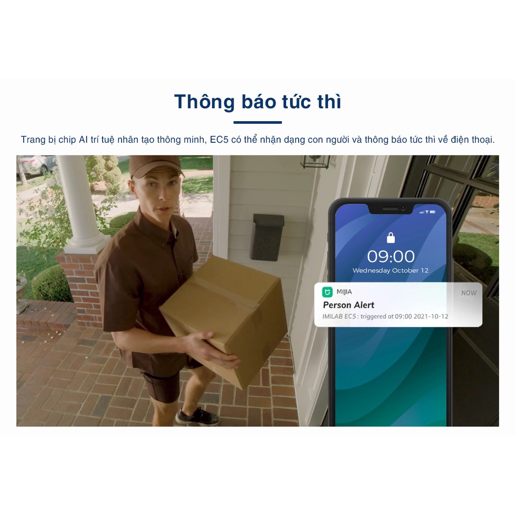 Nhờ hệ thống chip AI công nghệ trí tuệ nhân tạo, Imilab EC5 có khả năng phân tích thông minh hình dạng của con người trong hình ảnh để tránh các báo động sai trong trường hợp xuất hiện côn trùng, hay thay đổi điều kiện ánh sáng. Khi phát hiện hoạt động đáng ngờ, camera thông báo đến điện thoại của bạn qua ứng dụng Mi Home cho hiệu quả nhanh gấp 2 lần so với AI bên đám mây.