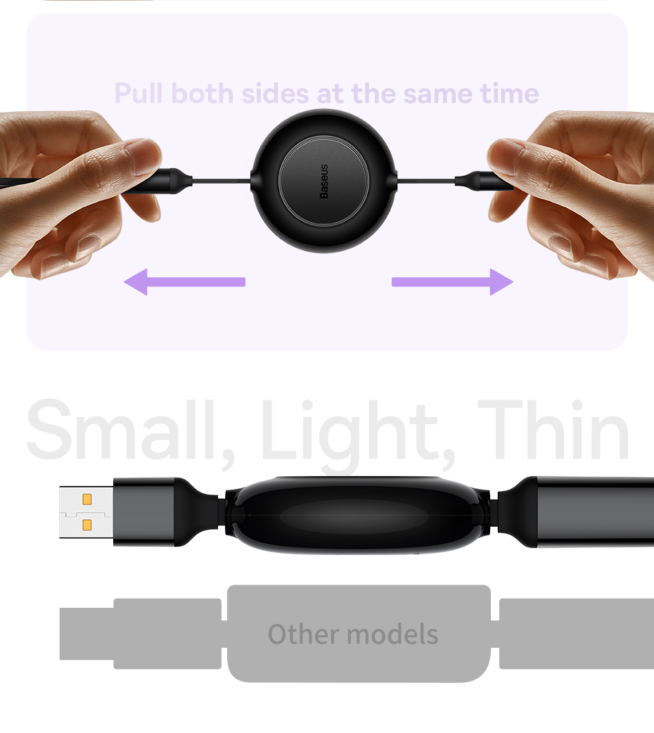 - Cáp sạc dây rút 3 đầu thế hệ mới Baseus Bright Mirror 2 Series 3 in 1 tích hợp 3 đầu kết nối phổ thông nhất hiện nay gồm Type C, Micro USSB và Lightning dùng sạc để sạc pin cho iPhone/iPad và smartphone/tablet Android và hầu hết các thiết bị số hiện nay.