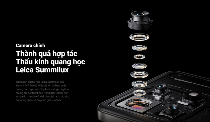 Xiaomi 14T Pro đánh dấu bước tiến trong việc hợp tác với Leica, với ống kính quang học Leica Summilux mang đến trải nghiệm nhiếp ảnh mới. Ống kính thu sáng tốt, cho phép chụp ảnh chi tiết, sắc nét ngay cả trong điều kiện thiếu sáng, đồng thời tái tạo màu sắc trung thực và độ tương phản cao, nâng cao chất lượng hình ảnh tổng thể.