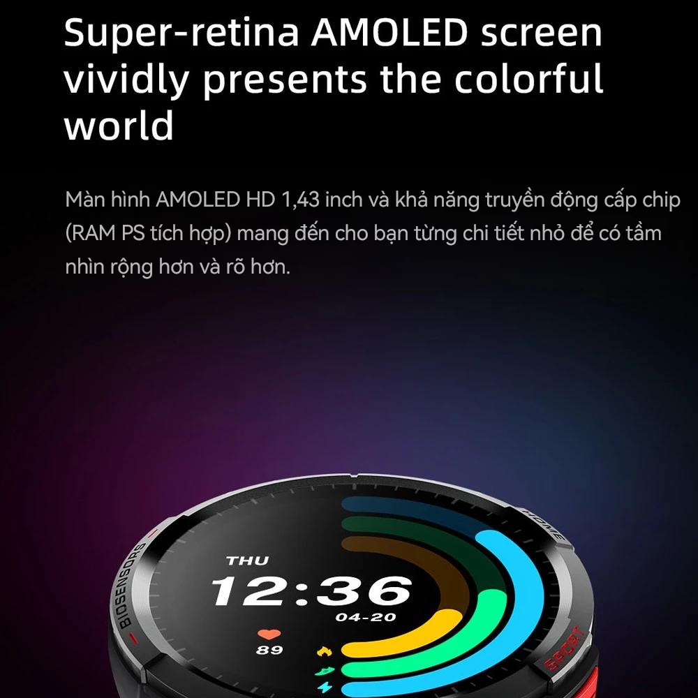 Sự kết hợp của công nghệ AMOLED super-retina và khả năng truyền động cấp chip (RAM PS tích hợp), Smartwatch Mibro GS XPAW008 đem tới tầm nhìn rộng và các chi tiết rõ ràng. Kích thước màn hình 1.43 inch với độ phân giải 466*466P của đồng hồ thông minh Mibro giúp người dùng có trải nghiệm học tập, làm việc và giải trí thoải mái hơn.