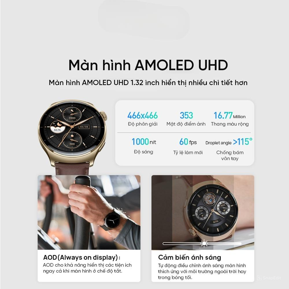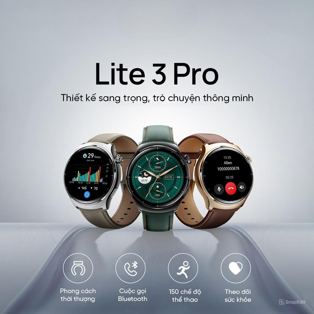 Màn hình đồng hồ thông minh Lite 3 Pro  bằng AMOLED 1.3 inch với độ phân giải cao cho hình ảnh sắc nét, sống động, màu sắc rực rỡ, góc nhìn rộng và độ sáng cao. Màn hình hiển thị rõ ràng ngay cả dưới ánh nắng mặt trời, giúp bạn dễ dàng theo dõi thông tin trên đồng hồ.
