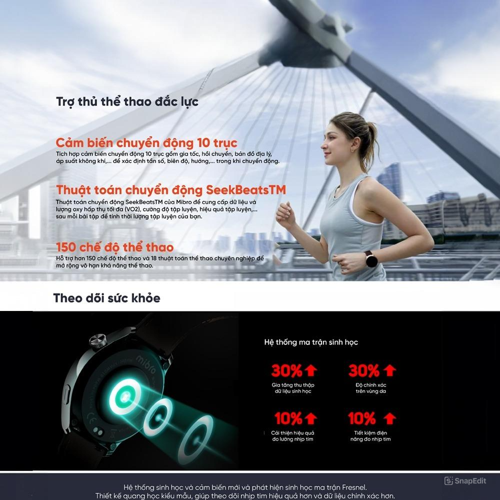 Bên cạnh đó là các bài tập SeekBeats™ Professional do Mibro tự phát triển các thuật toán có thể cung cấp phân tích dữ liệu chuyên nghiệp về lượng oxy tối đa của bạn hấp thu (VO2 Max), thời gian phục hồi, cường độ tập luyện (TL), hiệu quả tập luyện (TE), thời gian chạm, biên độ dọc, tỷ lệ biên độ dọc,... Sau một bài tập duy nhất, xác định lượng bài tập và số lần tập luyện của bạn. Hỗ trợ hơn 150 chế độ thể thao và 18 thuật toán thể thao chuyên nghiệp để mở rộng khả năng thể thao của bạn.