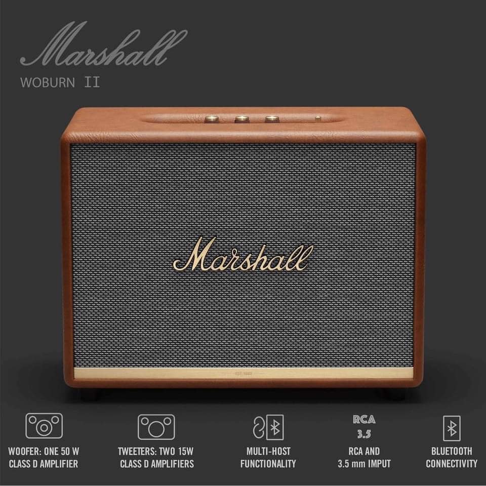 Loa Marshall Woburn 2 (II) vẫn được bọc da cao cấp với hai màu trắng và đen. Marshall đã nâng cấp củ loa bên trong và âm ly Class D mạnh hơn, để chiếc loa có công suất ~130W và đạt ngưỡng đỉnh trên 200 Watts, dư sức lấp đầy âm thanh cho những gian phòng khách không gian rộng.