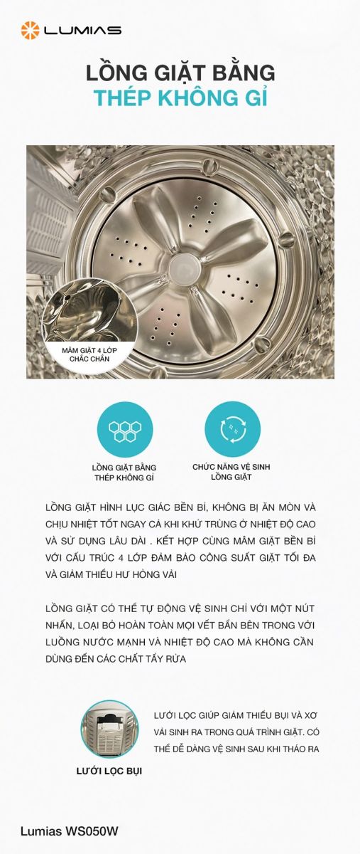 | Tên sản phẩm | Máy giặt mini Lumias WS050W |