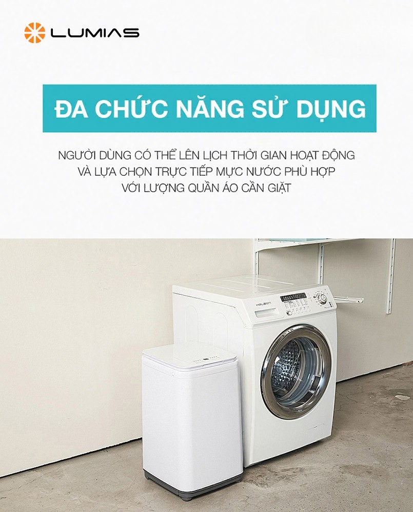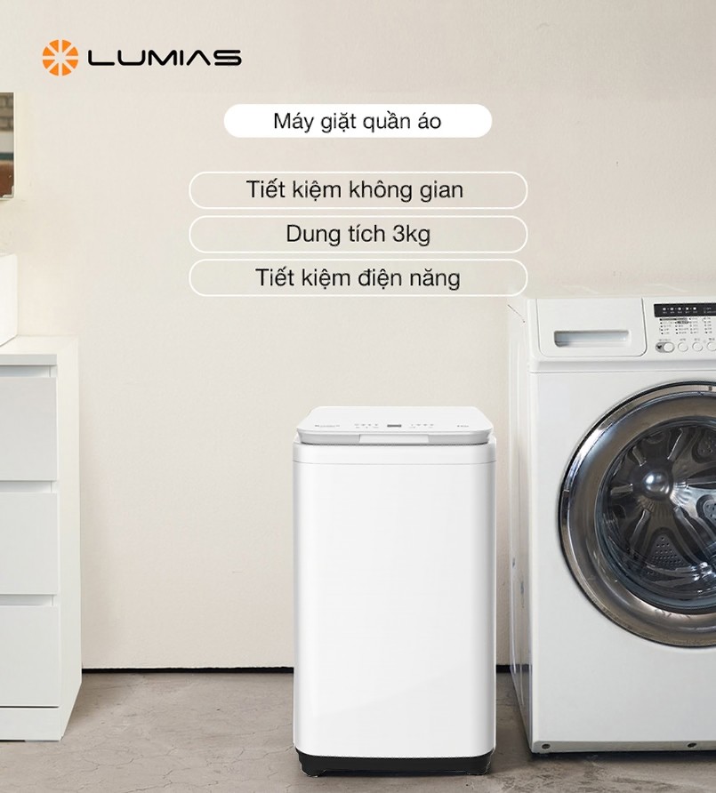 Máy giặt mini Lumias WS050W thiết kế nhỏ gọn, không chiếm diện tích