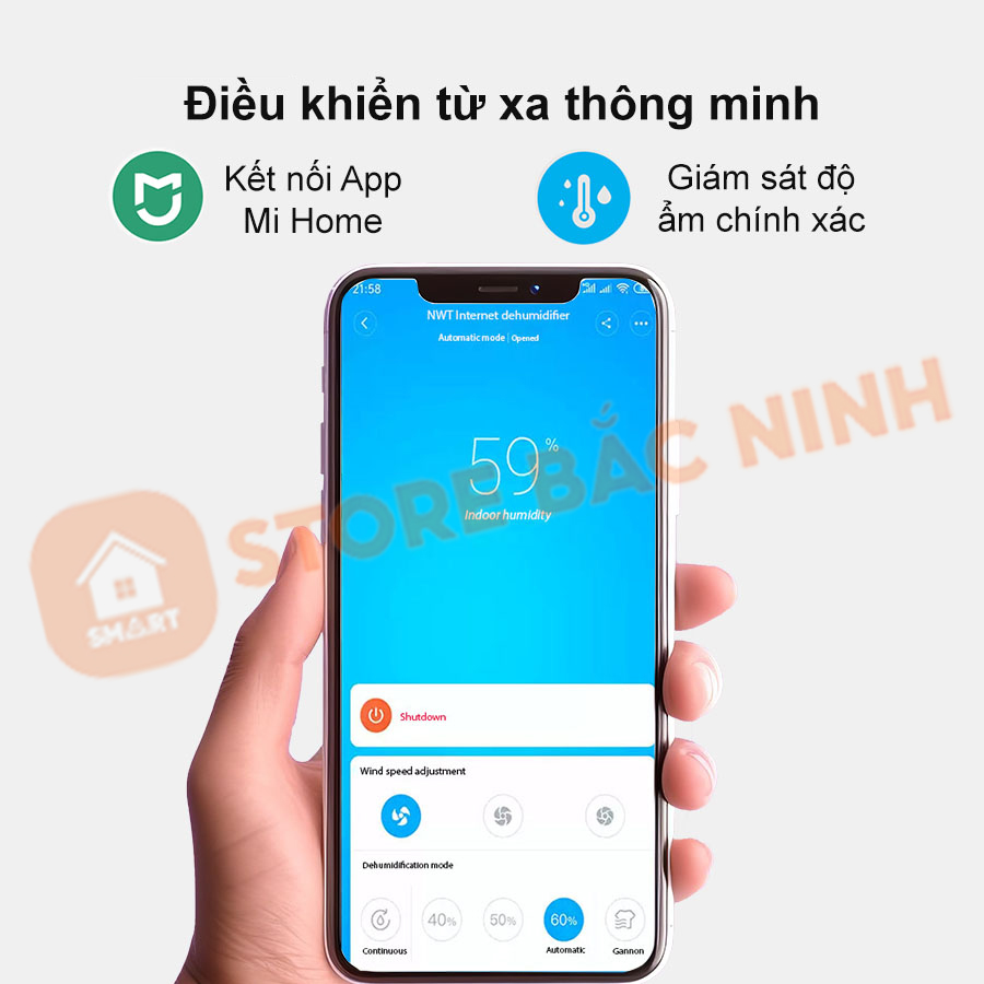 Điều khiển từ xa thông qua ứng dụng Mi Home, cài đặt nhanh chóng, tùy chỉnh nhiều chế độ khác nhau trên thiết bị phù hợp nhất. Hơn nữa, thông qua ứng dụng giúp bạn luôn kiểm soát, nắm bắt được mọi thông tin về độ ẩm trong nhà, tiện lợi, thông minh hơn bao giờ hết.