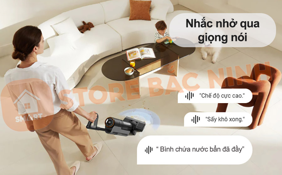 Dreame H12 Pro đi kèm với trợ lý ảo bằng giọng nói Tiếng Việt, cung cấp cho người dùng những lời nhắc bằng giọng nói, hay các hướng dẫn hữu ích giúp việc làm sạch trở nên đơn giản và thú vị hơn bao giờ hết.