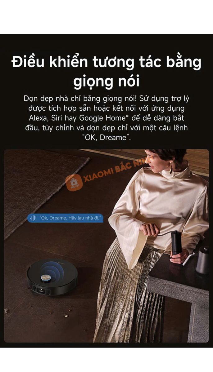 Dreame X50 Master mang đến sự tiện lợi tối đa khi hỗ trợ điều khiển bằng giọng nói. Người dùng có thể dễ dàng ra lệnh cho robot hoạt động mà không cần thao tác thủ công, chỉ cần nói “OK, Dreame” là robot sẽ tự động khởi động, dọn dẹp và tùy chỉnh chế độ vệ sinh theo yêu cầu. Ngoài ra, X50 Master còn tương thích với các trợ lý ảo như Alexa, Siri và Google Home, giúp bạn điều khiển từ xa và tích hợp robot vào hệ sinh thái nhà thông minh một cách dễ dàng.