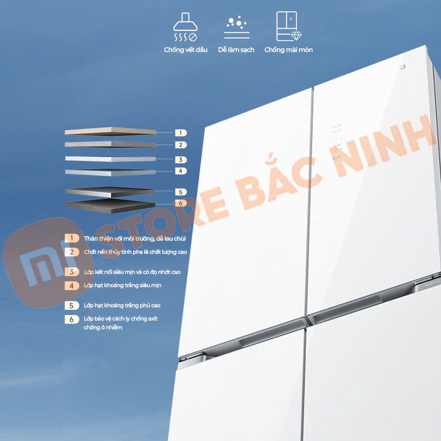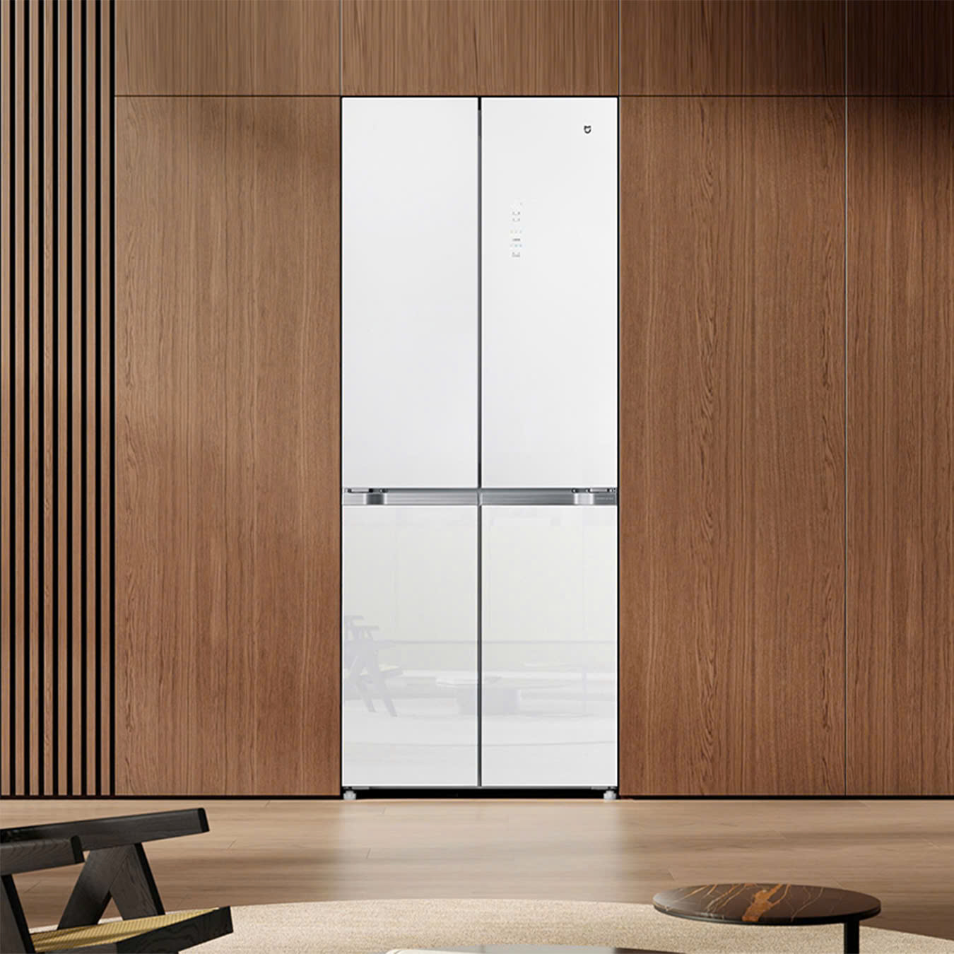 Tủ lạnh Mijia Fresh Cross Ice Crystal 439L sở hữu mặt kính nghệ thuật màu trắng pha lê băng dày 3.2mm. Chất liệu kính này không chỉ mang lại vẻ đẹp sang trọng mà còn dễ dàng lau chùi, chống mài mòn và chống dầu. Thiết kế này không chỉ tăng cường tính thẩm mỹ mà còn giúp tủ lạnh duy trì vẻ ngoài sáng bóng qua thời gian.