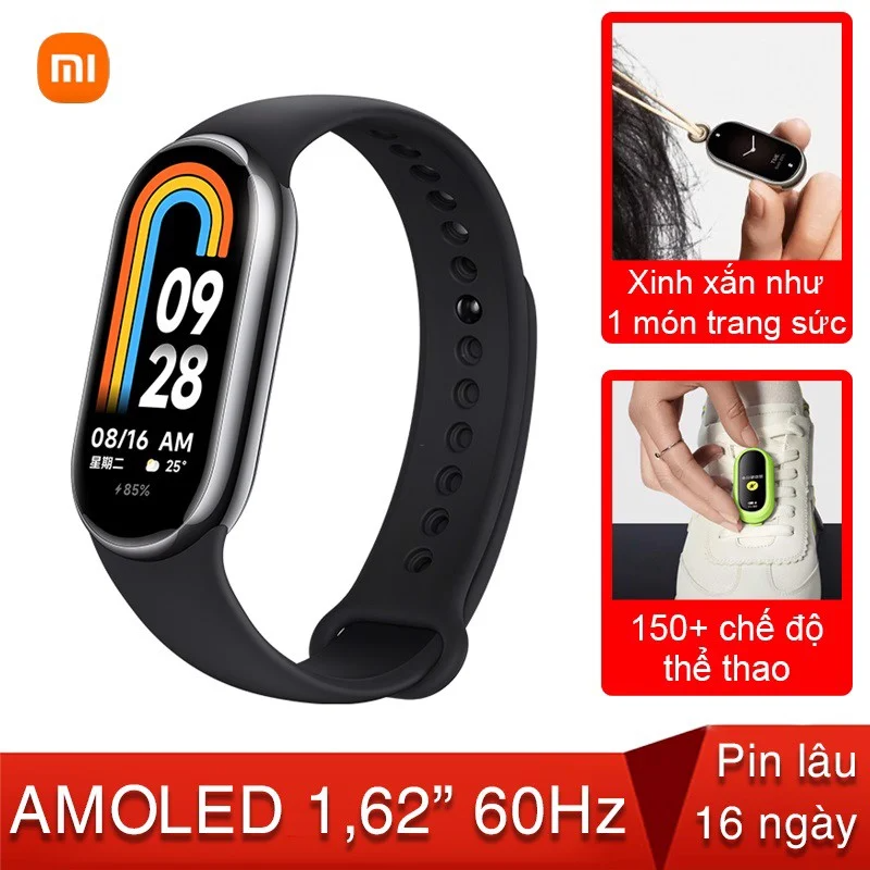 - Mang thiết kế gọn nhẹ, thoải mái, đi kèm vô vàn tính năng sức khỏe, tích hợp nhiều chế độ thể thao và rất nhiều tiện ích hằng ngày, Mi Band 8 sẽ là một trợ thủ đắc lực cho người dùng trong sinh hoạt, luyện tập với một mức giá vô cùng dễ chịu.